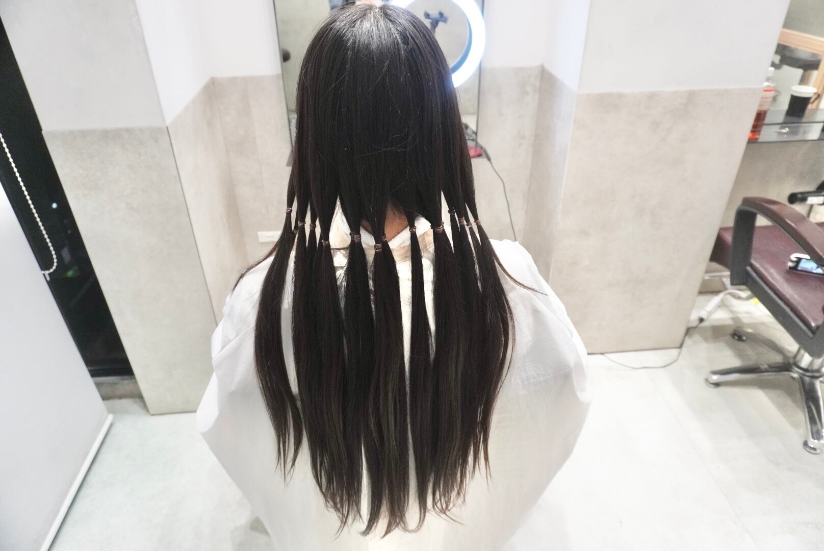 切った髪束は55〜60cm近くあり、全てヘアドネーションさせて頂きました。