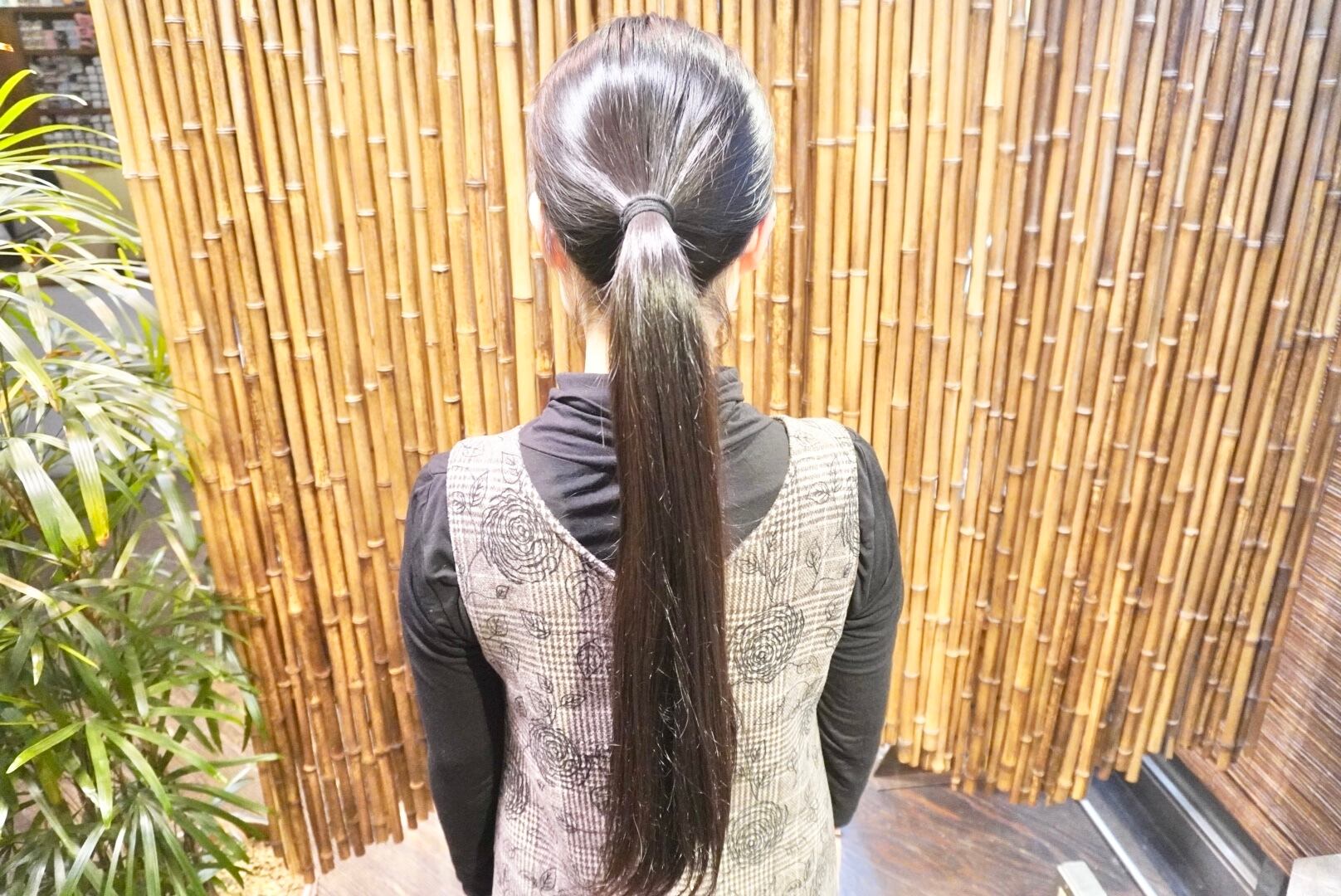 切った髪束は40cm近くあり、モデル様2回目のヘアドネーションを行いました。